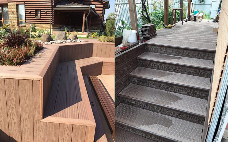 Террасная доска NanoWood — оптимальный вариант для отделки беседок, веранд, грядок, клумб, фасадов зданий, ступеней, заборов...